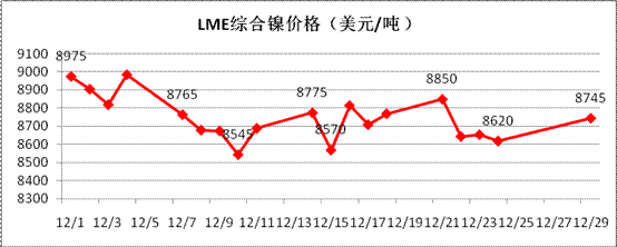 對于來年1月份走勢判斷,從技術(shù)面看,倫鎳在未站穩(wěn)8800美元/噸以上時,市場仍舊存在下跌至8100美元/噸一線的風(fēng)險,甚至存在創(chuàng)新低的可能。從基本面看,倫鎳庫存依舊高位,表面看市場供應(yīng)繼續(xù)充足,但從中國進(jìn)口精煉鎳、鎳鐵的量來看,并未呈現(xiàn)繼續(xù)增加的態(tài)勢,可見實際國外供應(yīng)量已基本接近現(xiàn)有峰值,國內(nèi)將進(jìn)入去庫存化周期,對于鎳市短期而言弱勢盤整是主流。