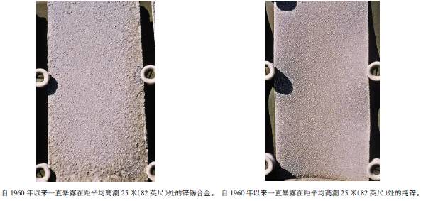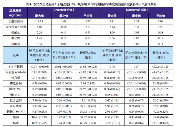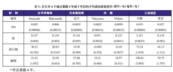 表3至表6的數(shù)據(jù)來自于日本、巴拿馬、Kure 海灘(北卡萊羅納州)和南非的試驗(yàn)地點(diǎn)??衫眠@些數(shù)據(jù)在類似環(huán)境中選擇適當(dāng)?shù)慕饘俨牧希M(jìn)行生命周期成本分析。