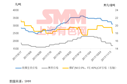 傳統(tǒng)淡季來臨,11月中后期,乃至12月,200系不銹鋼消費疲態(tài)或延續(xù),不銹鋼價格趨弱概率較大;低鎳生鐵供需顯失衡,供大于求;低鎳生企業(yè)仍有一定的利潤空間。雖然11月初至今,因廢鋼價格堅挺以及低鎳生鐵價格趨弱,低鎳生鐵與(廢鋼+電解鎳)配比組合價差逐漸縮小,但整體看,11月中后期及之后,低鎳生鐵市場利空因素多于利多因素,故11月中后期乃至12月,低鎳生鐵價格或延續(xù)弱勢。